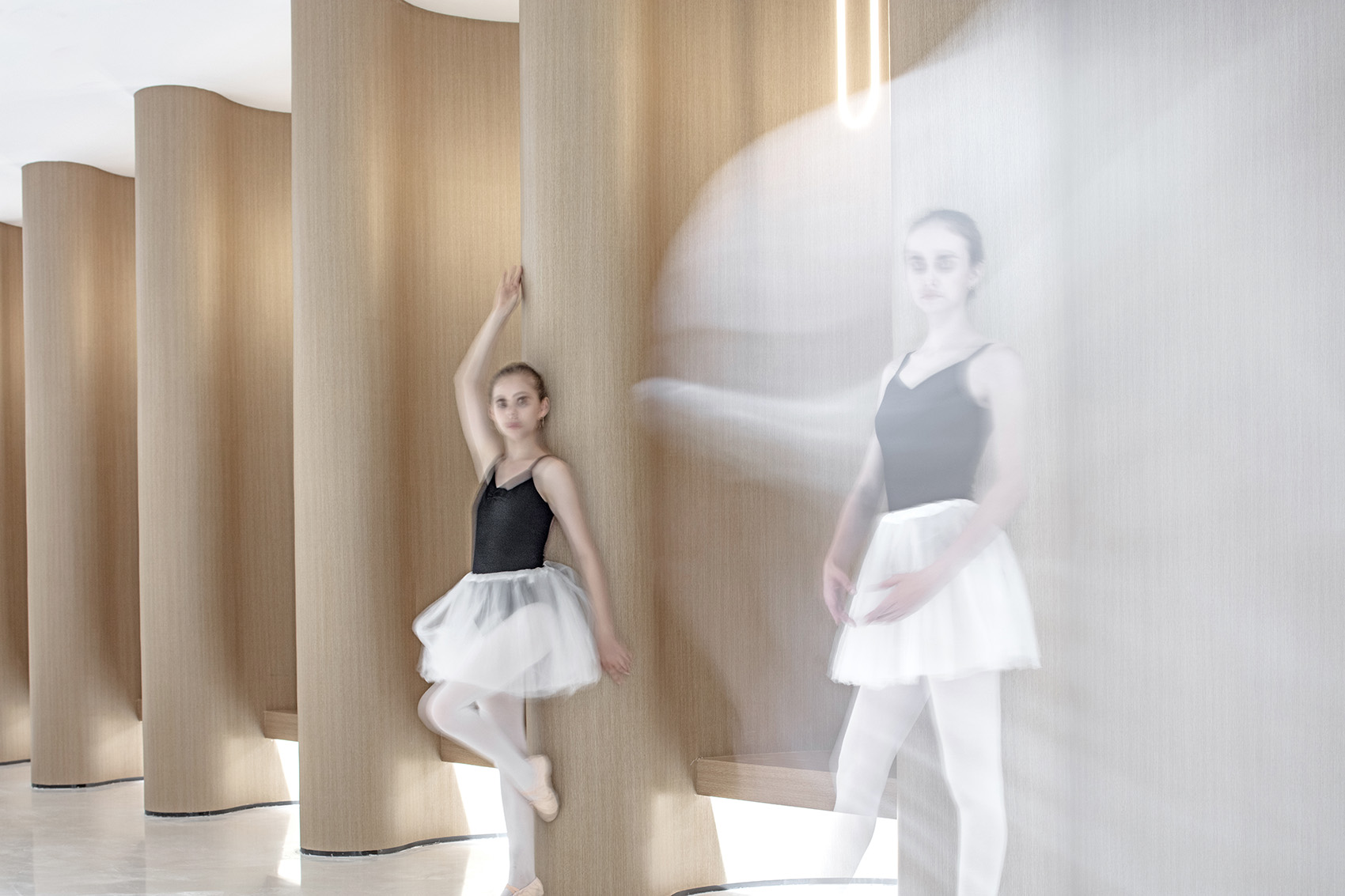 我们采用大面积的光膜来设计光线,以柔和的照明功能为舞者们创造出最美、最自信的表现空间。这种设计使舞者的轮廓线条得以清晰呈现,让他们在舞台上展现出最佳的姿态和表现力。人与空间的艺术相互融合,创造出一种仿佛诗歌般的宁静氛围。在这样的环境里,舞者们能够更好地沉浸在艺术的表达中,展现出他们的才华和魅力,同时也让观众们沉浸在美妙的艺术氛围中,体验到心灵的愉悦和满足。