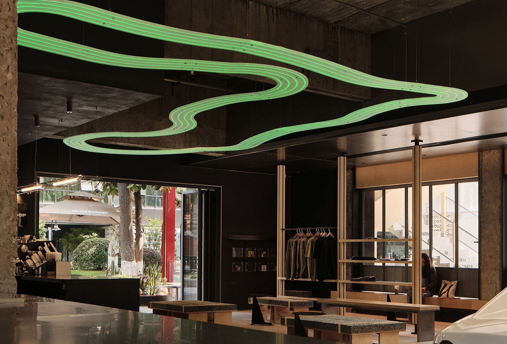 The unique charm of the original building has become one of the sources of inspiration for the design. The design team hopes to explore and regulate the coexistence of new and old elements through clever handling of design, so as to present a unique charm to the space. Through the integrated design of architecture, interior, landscape, and lighting, the relationship between the overall and local aspects of the project becomes more flexible and organic, while better integrating brand elements and brand stories.