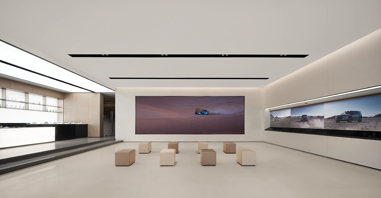 The blank space also brings a bright and transparent feeling to the exhibition hall. The glass curtain wall composed of crystal clear ultra white glass, as well as the divided skylight at the top, maximizes the lighting area and gives the space a clear and pure transparency, bringing people the ultimate comfortable natural background color. Looking up at the after-sales service of automobiles, we adhere to the sincere and original intention, and strive to bring the ultimate service experience to our customers with great breadth and precision. The exhibition hall design revolves around the service attributes of soft furnishings and ceremonial interaction, exploring the comfortable environment "temperature" and ceremonial space "temperature". The store design, through the subtle details of service, luxury and multi sensory experience, endows people with trust, enhances the brand's reputation, professionalism and integrity, achieves good cooperation consensus and provides a pleasant ultimate experience.