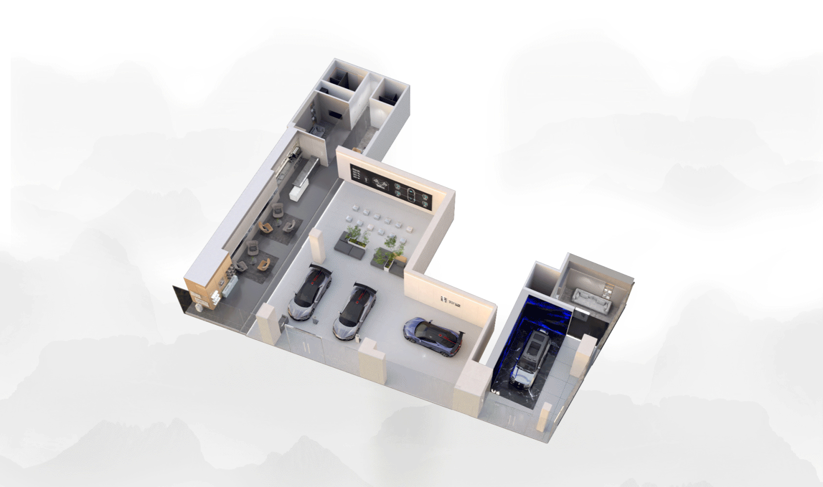 Looking up is a high-end new energy vehicle brand under BYD Group, relying on BYD Group's innovative automotive technology, top-notch industrial system strength, and forward-looking design to provide users with high-end car products beyond imagination. Looking up, we will build a high-end brand exclusive to the era of new energy vehicles with disruptive super technologies and products. From 2022 to 2024, Extra Space will work hand in hand to carry out standardized design (SI) for the entire terminal store, including the following prototype stores: 10000+㎡ 4S store, 2000+㎡ urban showroom PLUS store, 600+㎡ urban showroom store, and 300+㎡ supermarket showroom store. The extra space revolves around the brand spirit of "daring" and is designed with the concept of "leisurely environment". It establishes a spatial narrative relationship of three dimensions: "people and cars, people and space, and people and people". Starting from service design, it carries out experience design and space design, systematically defining the high-end automotive brand electrification experience space.