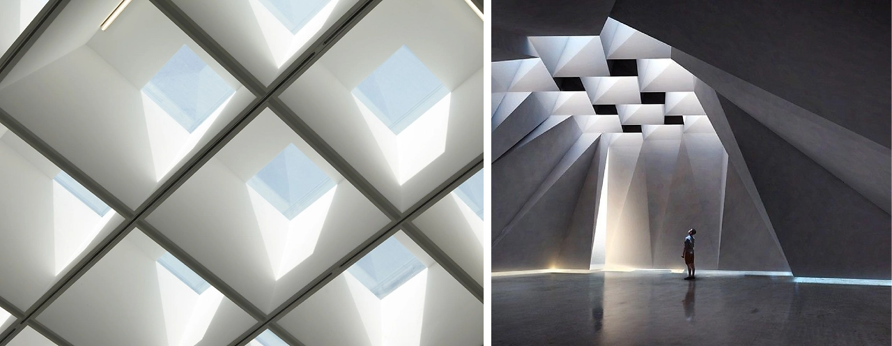“晴雨两宜,四时皆景、晨沐朝霞、夜观星斗”的自然空间,体现着人与自然和谐共生的思想。 天井是经过精心设计的天地。在中国传统建筑中,天井是人与天地对话的窗口,体现着人与自然的交融,这种思考在西方的建筑设计中也常有体现。 天花设计灵感源于中式天井元素,由现代美学演绎,用更简洁的设计语言诠释东方情调的空间氛围。格外空间通过灯光编程的技术手法,模拟天光的自然效果,结合光和影、自然与现代,追求内涵与尊贵的诗意空间。