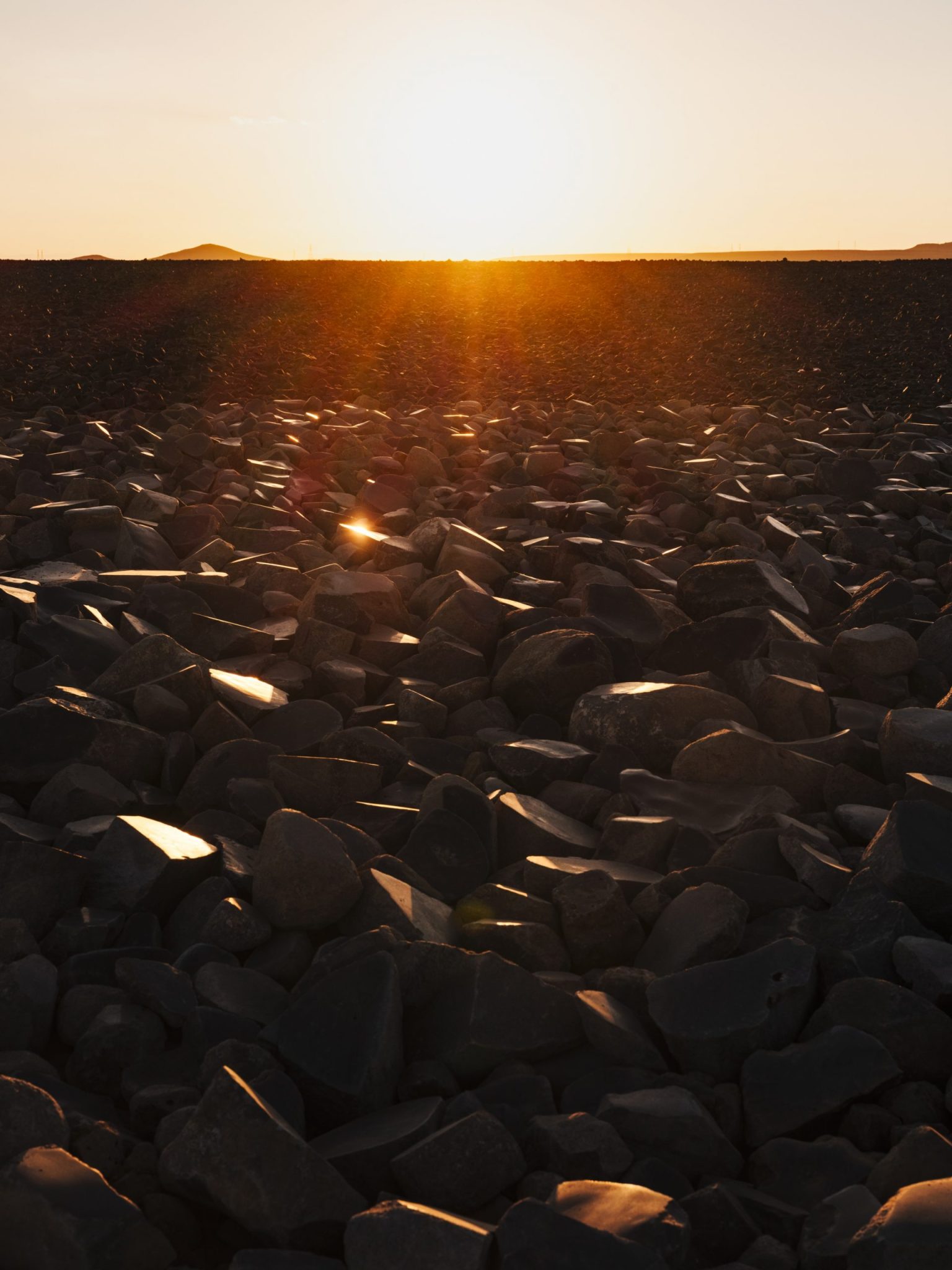 In Caline Aoun’s The Desert Has No Surface, stones from the basalt plateau of Harrat al Sham are polished on one side. The sun is an essential element in Aoun’s work which is activated through the refraction of sunlight producing moments of shimmering that reflect the impermanence of the desert landscape and the natural forces that created it.