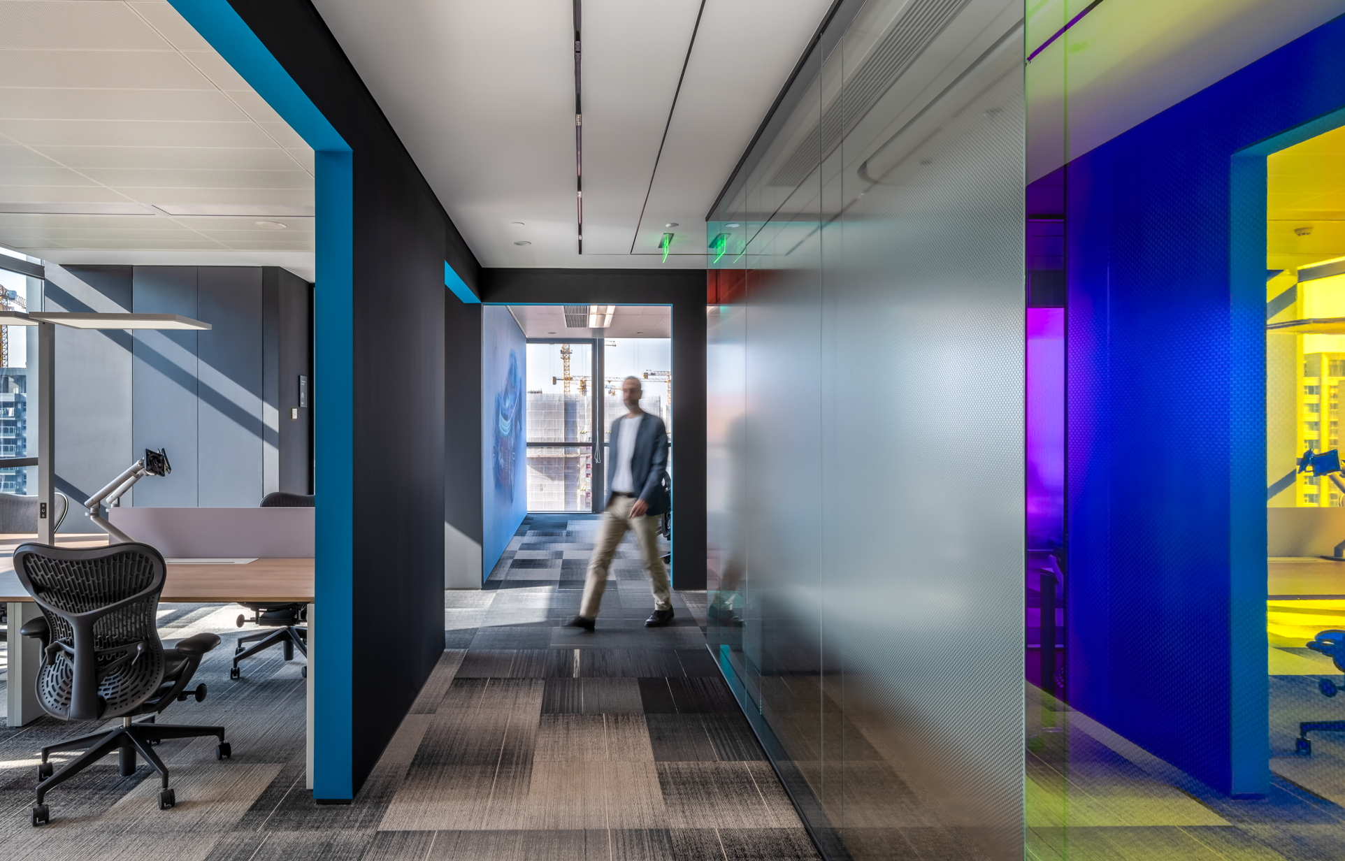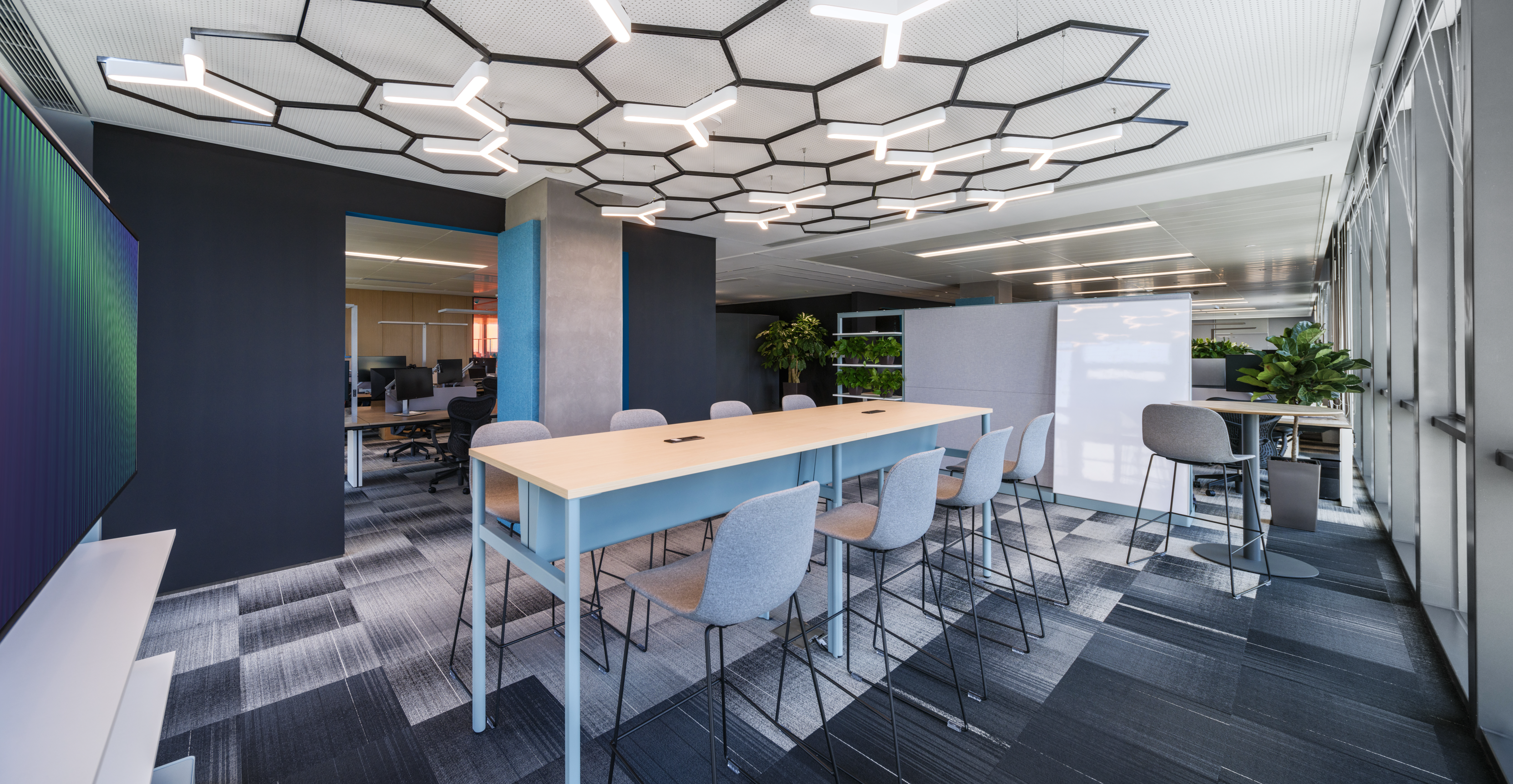 所有设施如照明、空气净化系统、高性能声学和家具的选择,创造了一个健康且符合人体工程学的空间,同时有助于室内的整体体验,从最初的概念规划到材料选择和MEP设计,工作场所嵌入了健康标准,以达到WELL认证。