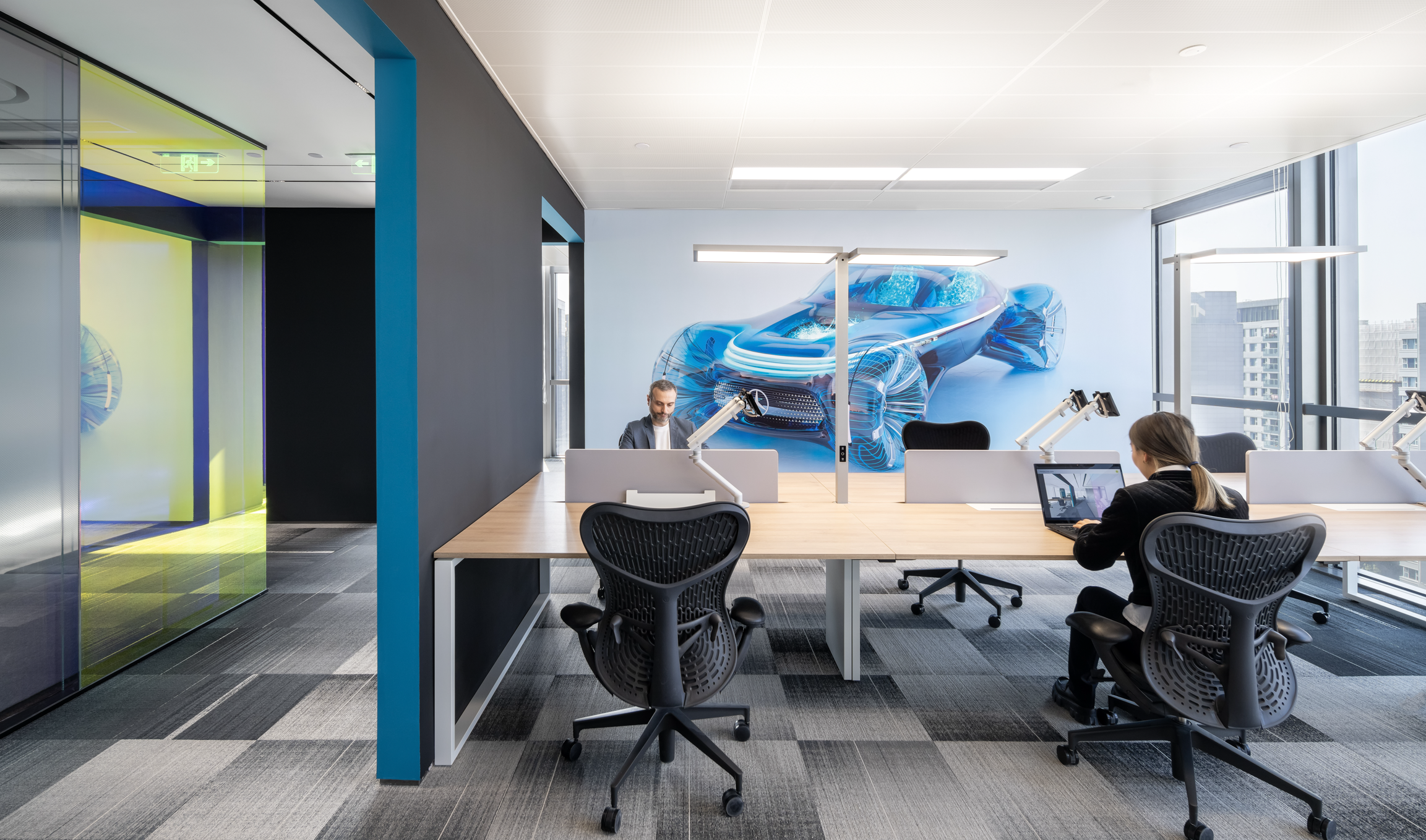 The space envisioned by Mercedes Benz should not only reflect a strong attraction to technological talents, but also integrate the local culture of Shanghai and the core values of Mercedes Benz's corporate culture. This environment aims to provide a space for a newly formed team of 250 talents and establish benchmarks consistent with the respected industry standards of its brand.