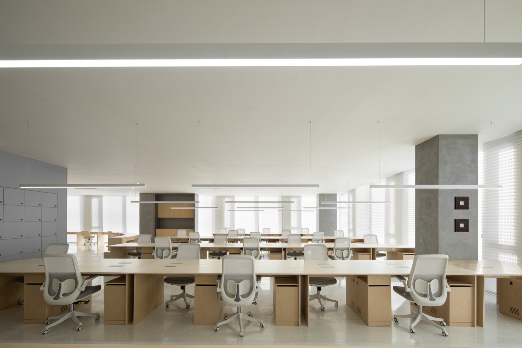 Entering the office space, you will be greeted by an open discussion area and meeting room. The indoor space is reserved for green plants, providing a comfortable working environment and providing a buffer and relaxation for busy work environments. At the same time, the green plant leisure area can also be used for relaxation or discussion.