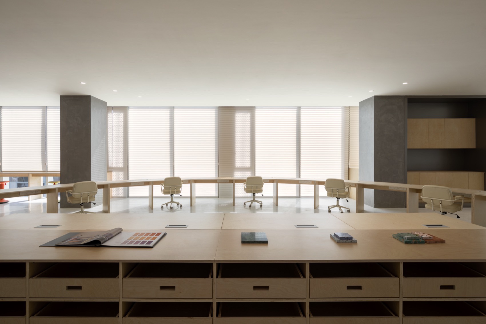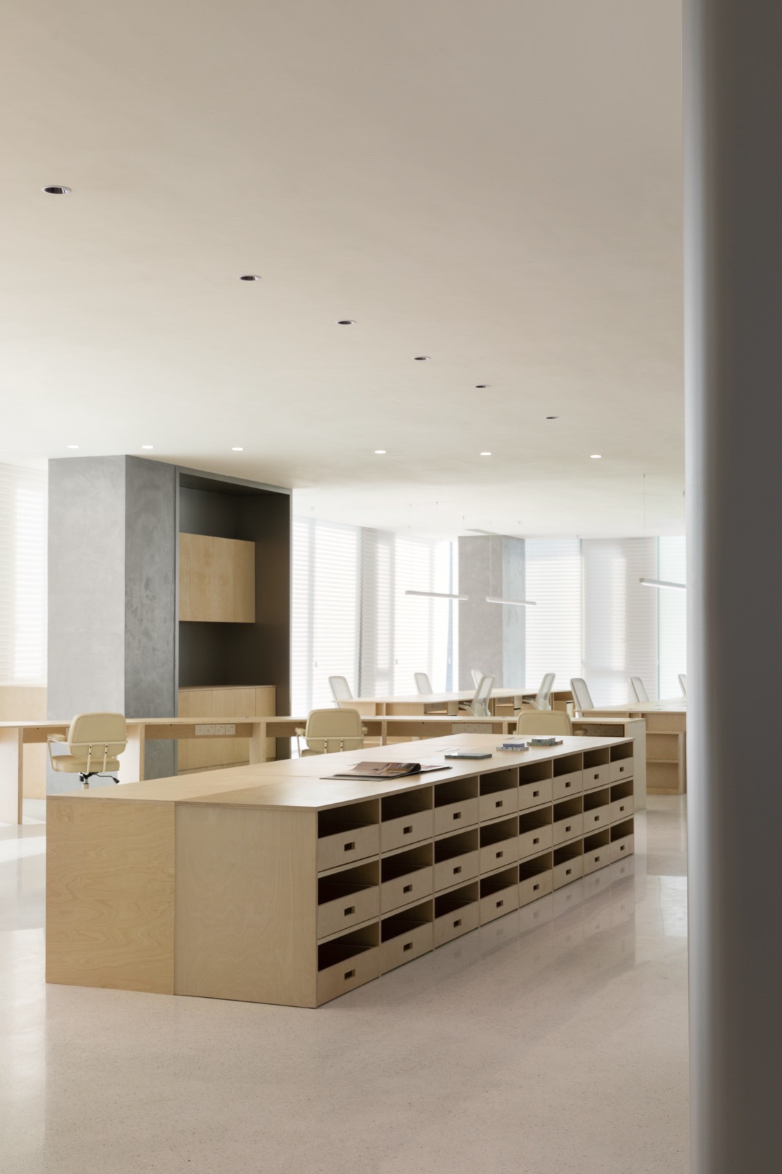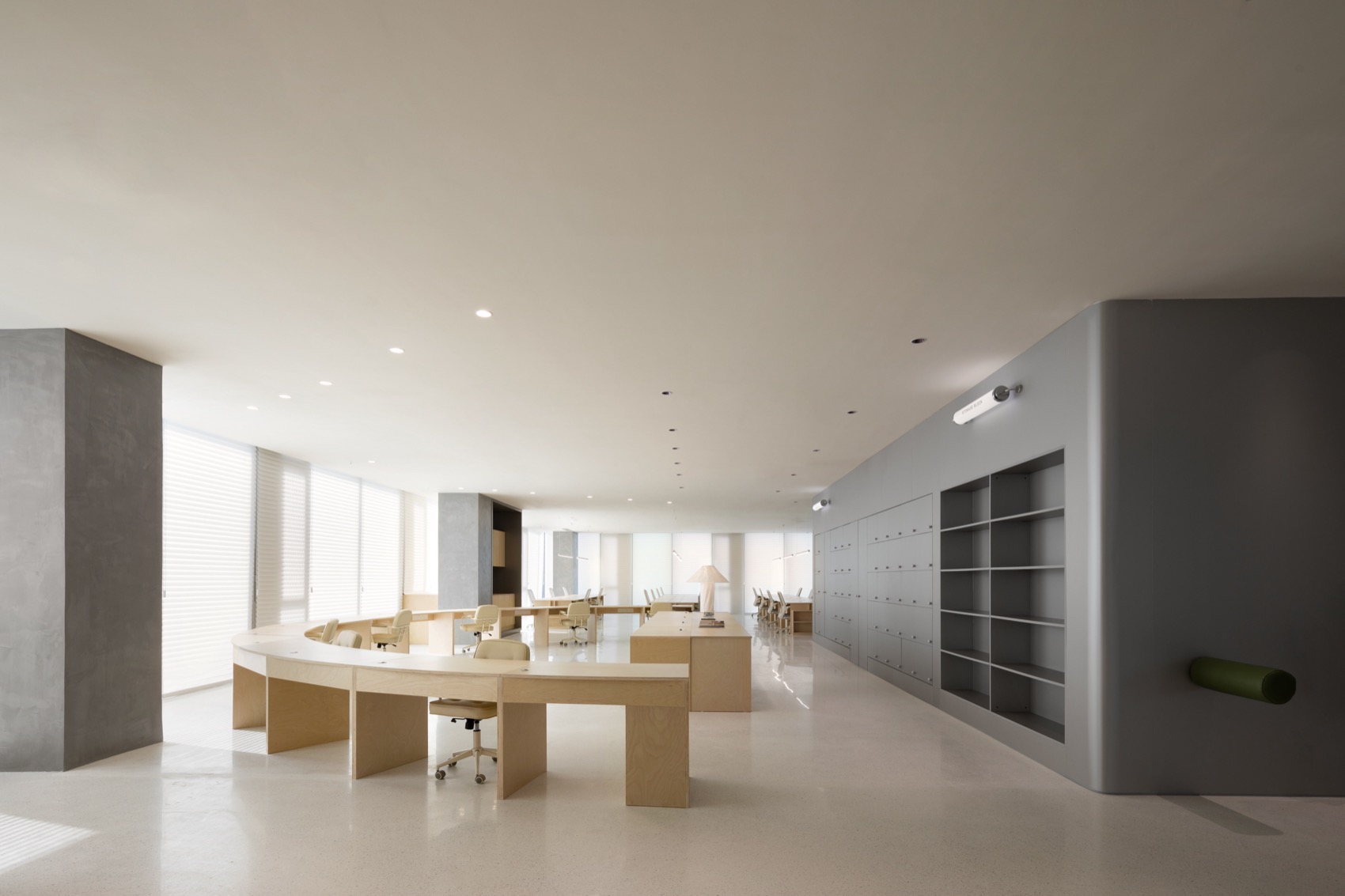办公区域以提高工作效率为主,做了开放的办公空间,这样能够保证员工在线下交流的时候更加功高效快捷。品牌的理念是爱与科学,公司希望能够给员工提供同样的关怀,所以在设置开放办公的同时也设计了灵活的讨论区域,用来满足日常不同的办公需求。