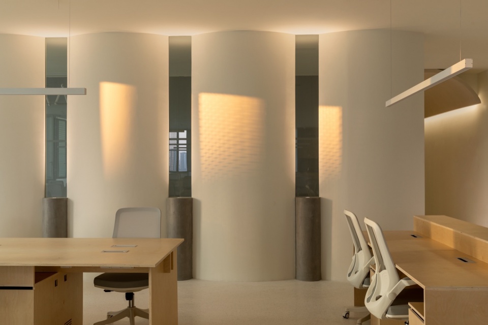甲方品牌核心理念为“爱与科学”,我们从爱与科学两个关键词出发,从功能上,我们明确了“厚墙”理念。“厚墙”的存在使整个空间井然有序,动线流畅,空间划分不凌乱,同时他也寓意着公司保护爱护着每个员工,就像爱护着每个消费者一样。从开放办公区到独立的会议室,从休闲的茶水间到静谧的资料室,每一处空间都因 “厚墙” 的合理分隔而井然有序。员工们日常工作的动线,也因 “厚墙” 的引导变得流畅自然,不会出现不同路线相互交叉干扰的情况。而且“厚墙” 对于空间细致的划分,避免了办公空间变得杂乱无章,各个区域各司其职,完美融合为一个高效协作的整体。